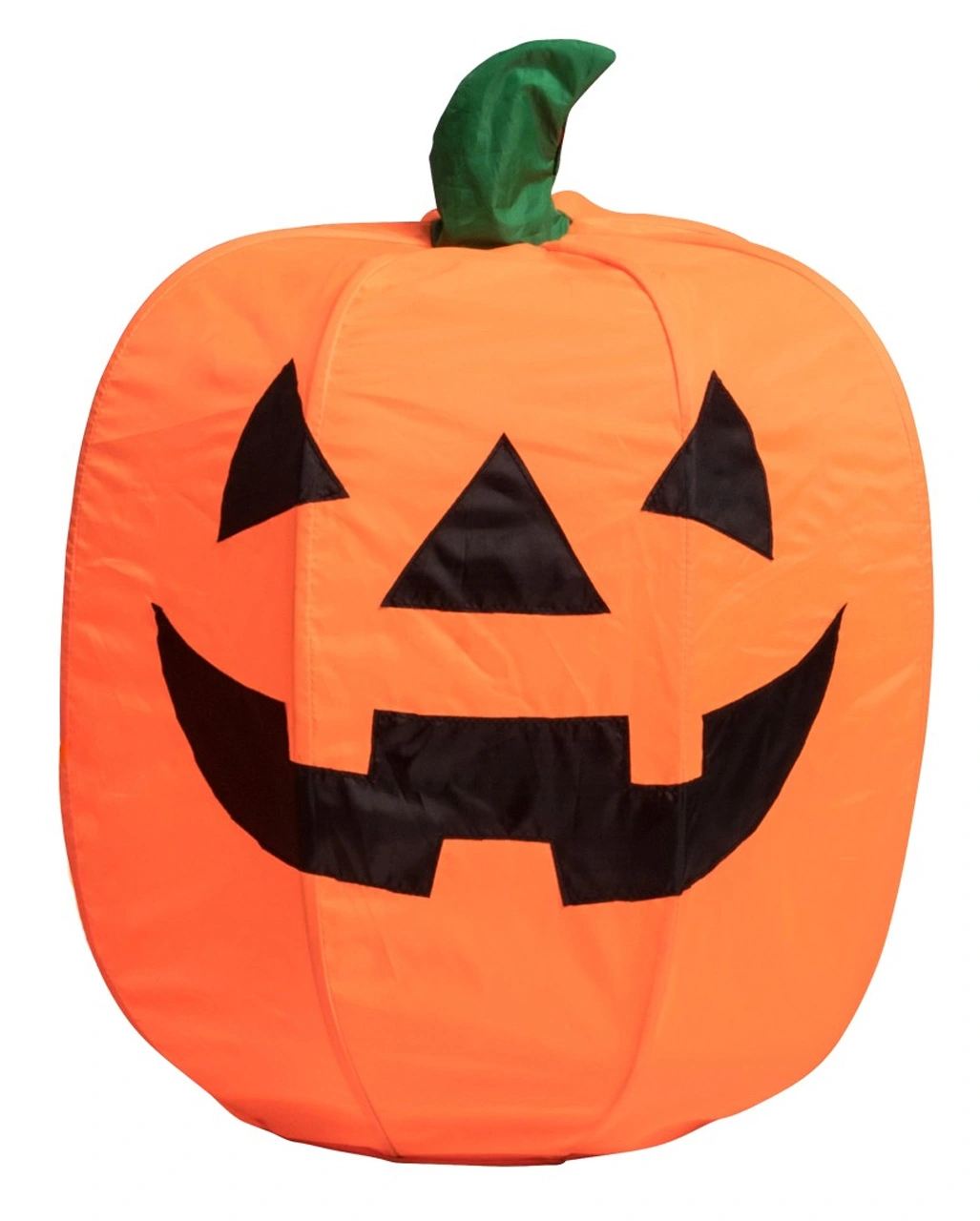 So ein Faltbarer Kürbis mit Beleuchtung ist die ideale Deko für Halloween. Er ist aus Polyester und kann dank der Draht-Konstruktion einfach auseinander gefaltet werden. So wird die Deko Beleuchtung zu einem richtig schönen runden Kürbis Kopf. Der hat ein breites Grinsen und freundliche Augen. Das satte Orange wird noch durch den grünen Stengel abgerundet. Das Beste an dieser leuchtenden Halloween Deko ist aber, dass du den Halloween Kürbis hinterher wieder zusammenfalten und ihn platzsparend aufbewahren kannst. Weitere Trick or Treat Deko wie die Geister Girlande 300 cm findet ihr hier im Shop.