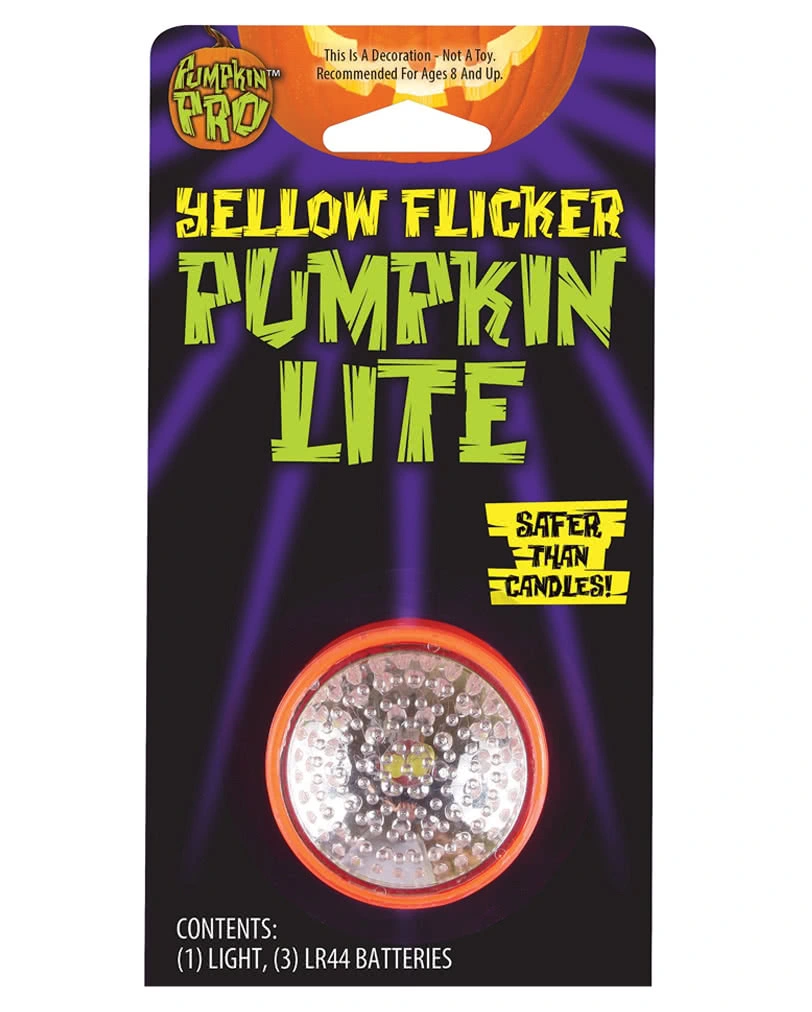 Das gelb, flackernde Kürbis Licht besitzt drei LEDs, die das Licht einer Kerze simulieren. Das flackernde Licht kann man zusätzlich für andere Gelegenheiten auch in Laternen und Lampions verwenden, die damit sicher beleuchtet werden können, ohne das dabei die Gefahr eines Brandes entsteht. Andere Variationen der Kürbis-Innenbeleuchtung sind das Blitzendes Kürbis Stroboskop und das Kürbis Licht Farbwechselnd, mit dem Kürbis Schnitz Werkzeug bekommt man den Kürbis entleert und zurechtgeschnitzt.