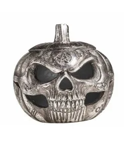 Die Kürbis Totenschädel Schale sorgt nicht nur in der Halloween Nacht für einen eindrucksvollen Anblick. Der Schädel einer finsteren Figur, mit einem Pentagramm versehen, sorgt für Nächte voller Gänsehaut. Es klappert und rauscht in allen Ecken. Hat der schreckliche Kürbis Totenkopf etwas damit zu tun? Will er seinen schrecklichen Einfluss über die Grenzen von All Hallows Eve hinaus stärken? Oder handelt es sich bei der Kürbis Totenkopf Schale um ein harmloses Gothic Deko Accessoire, das du mit Hilfe eines LED-Licht in ein zauberhaftes Nachtlicht im Halloween Design verwandeln kannst.