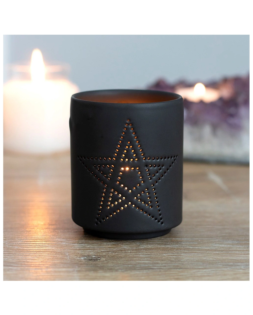 Lieferumfang: 1 x Schwarzer Teelichthalter mit Pentagramm