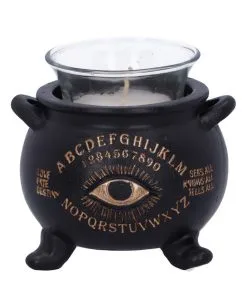 Der Spirit Hexenkessel als Teelichthalter kommt mit mystischer Symbolik. Ein allsehendes Auge ist in Gold auf dem mattschwarzen Teelichthalter abgebildet. Der Spirit Hexenkessel als Teelichthalter ist mit Ouija-Schriftzügen und -Zahlen verziert. Zudem finden sich auf ihm die Worte „Love, Fate, Destiny“ und „Sees all, Knows all, Tells all“, die das Auge flankieren.